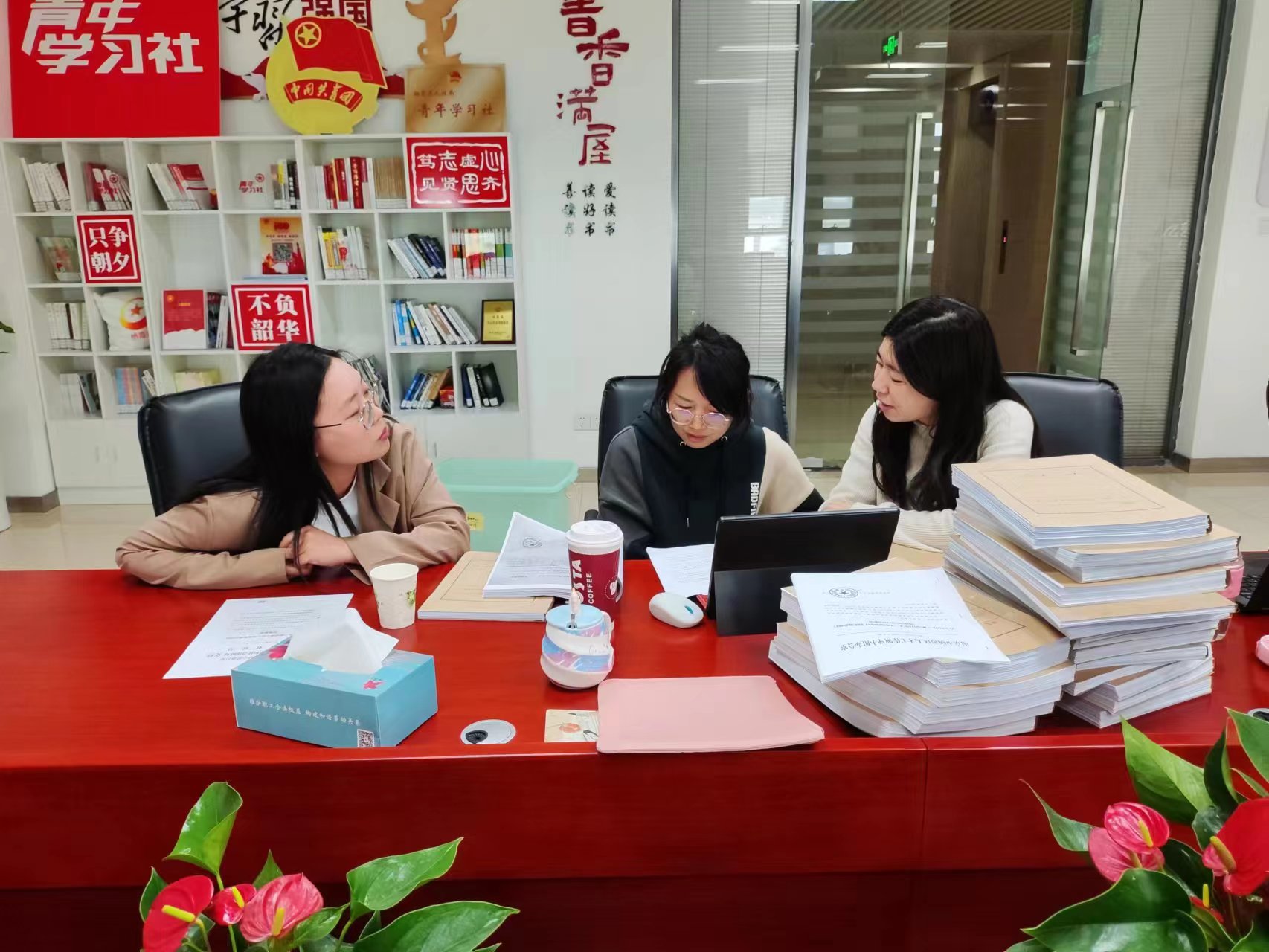 近日,栖霞区审计局在部门预算执行审计中,关注政府购买服务管理。审计人员通过查阅财务凭证及台账等资料,重点审查承接主体、政府购买服务实施范围、合同签订及履行等合规情况,促进政府采购领域公平竞争、助力优化营商环境。图为审计现场。(汪媛、庄添妍、张翠婷)