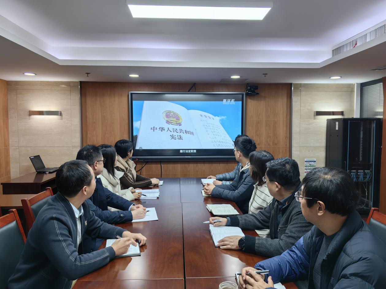 市局法规处开展宪法宣传系列活动。播放宪法宣传片、组织党员干部参与宪法知识问答、积极“送法上门”,为国有企业宣讲法律法规及风险防范措施、邀请法律专家举办“依法行政与风险防范”法治讲座,让审计干部牢固树立法治意识,恪守权力边界,加强依法审计过程中的风险防范,推动审计干部严格规范公正文明执法。图为现场观看宪法宣传片。