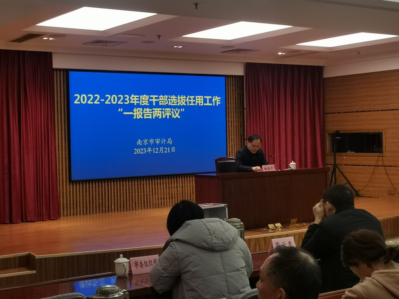 近日,市审计局召开专题干部会议,对该局2022-2023年度干部选拔任用工作进行“一报告两评议”。53名处级以上领导干部和基层党员干部群众代表参加。会上,该局主要领导作了2022-2023年度干部选拔任用工作报告,与会人员对两个年度的局党组选人用人工作和新提拔任用干部进行了民主评议。