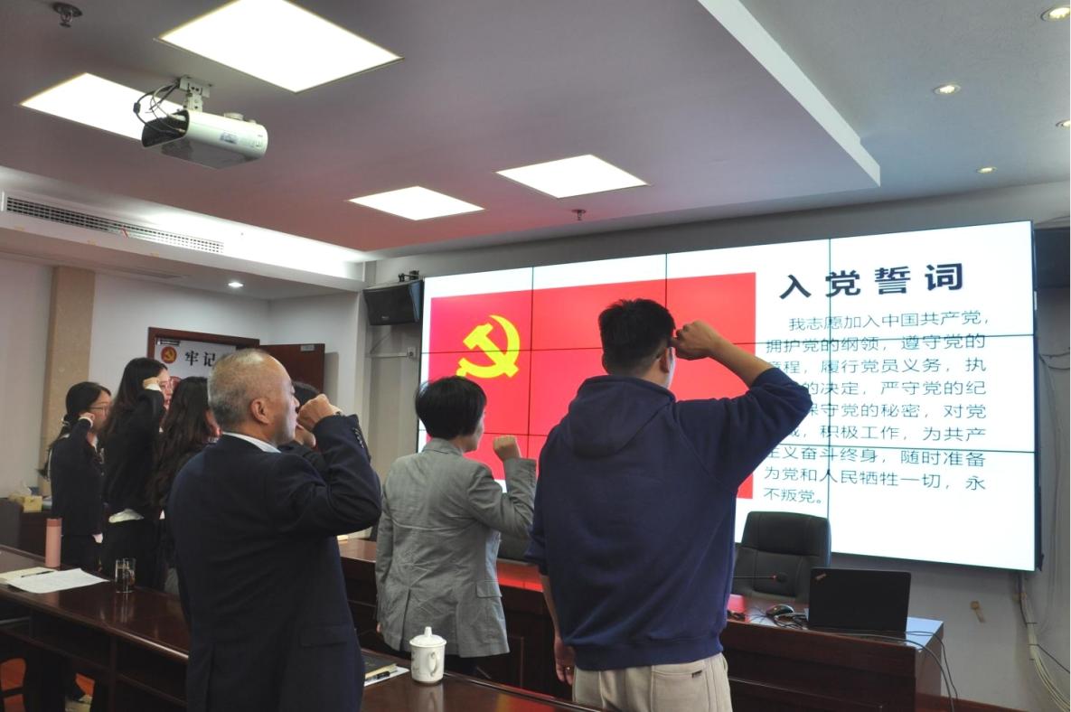 “我志愿加入中国共产党,拥护党的纲领,遵守党的章程……为共产主义奋斗终身,随时准备为党和人民牺牲一切,永不叛党。”在党支部书记带领下,大家面向党旗,庄严宣誓,铮铮誓言表达对党的无限忠诚和为党的事业奋斗终身的坚定信念。