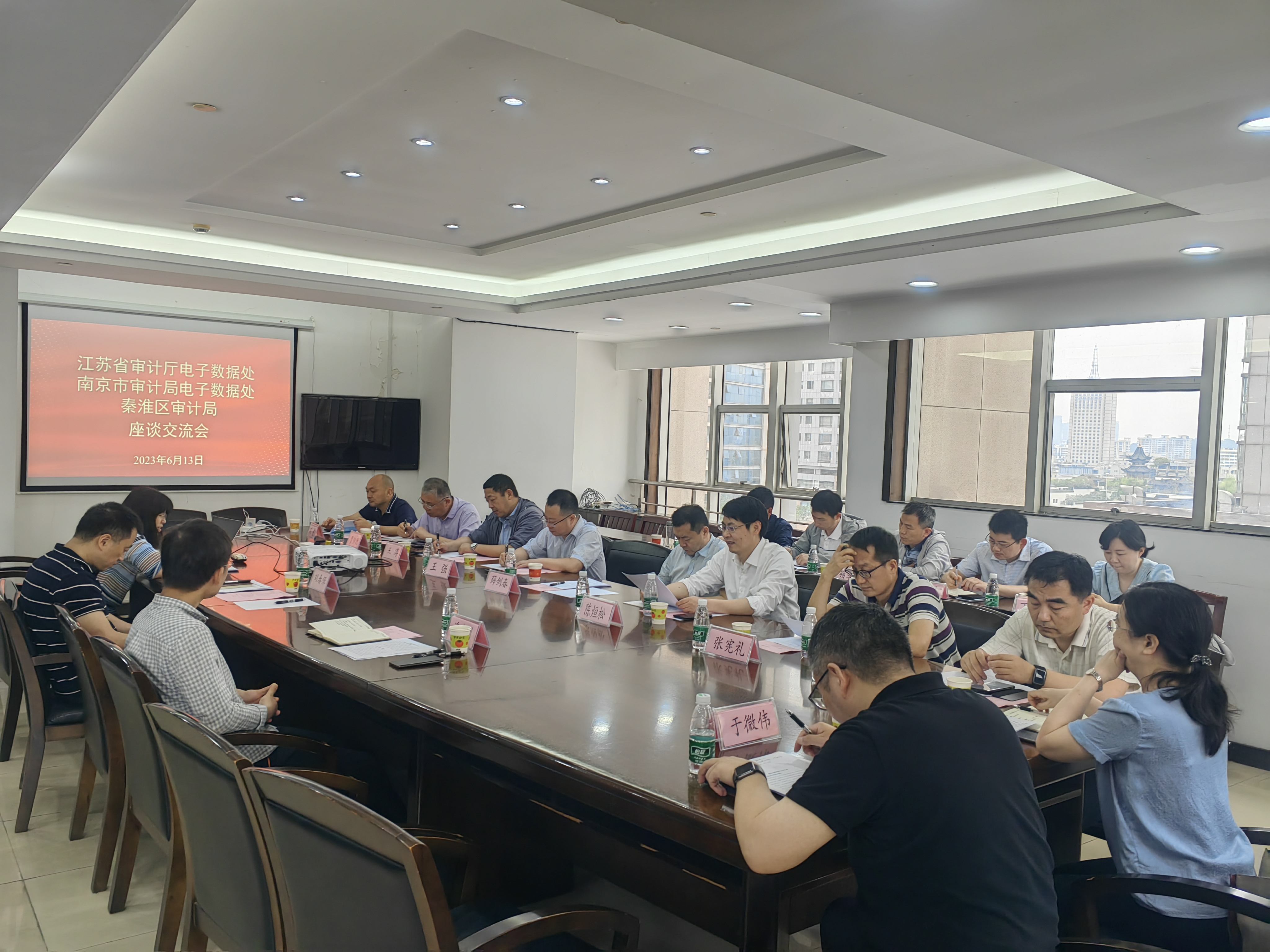 近日,省审计厅、市审计局电子数据处一行赴秦淮区审计局调研大数据审计工作。会上,该区审计局汇报了近年来大数据审计工作开展情况、存在的问题和困难以及下一步打算,调研组对该局大数据审计工作给予肯定,并进行问题分析和指导,提出要进一步提升对大数据审计工作重要性的认识,充分利用好省、市培训等现有资源,密切上下联动,加快人才培养,不断做强大数据审计,更好服务审计工作大局。图为调研会现场。(李永梅)