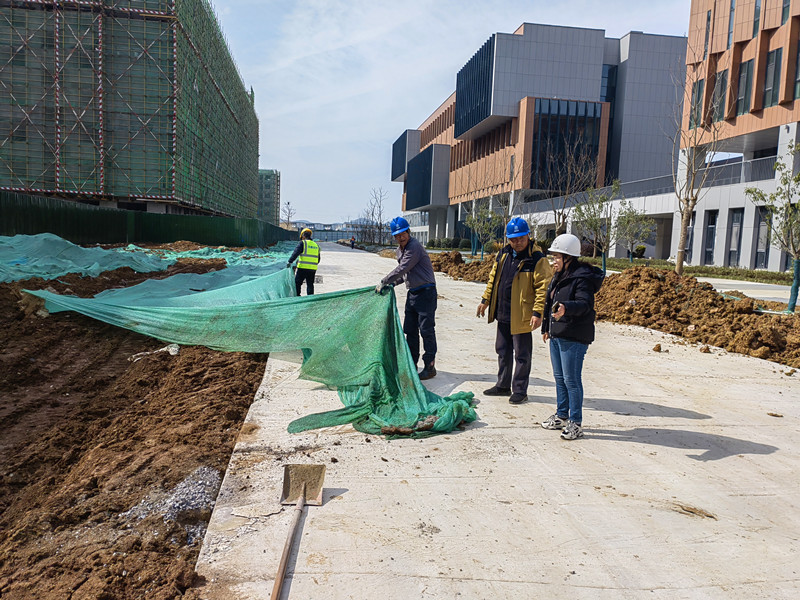 近日,溧水区审计局对南林溧水校区科技创新港项目开展审计,积极关注扬尘治理措施实施情况,督促施工单位采取覆盖硬化场地、分段作业、择时施工、洒水抑尘等有效防尘降尘措施,有效遏制施工扬尘对城市空气质量的影响,助力推进城市生态文明建设,共建美好家园。图为审计现场。(赵瑜)