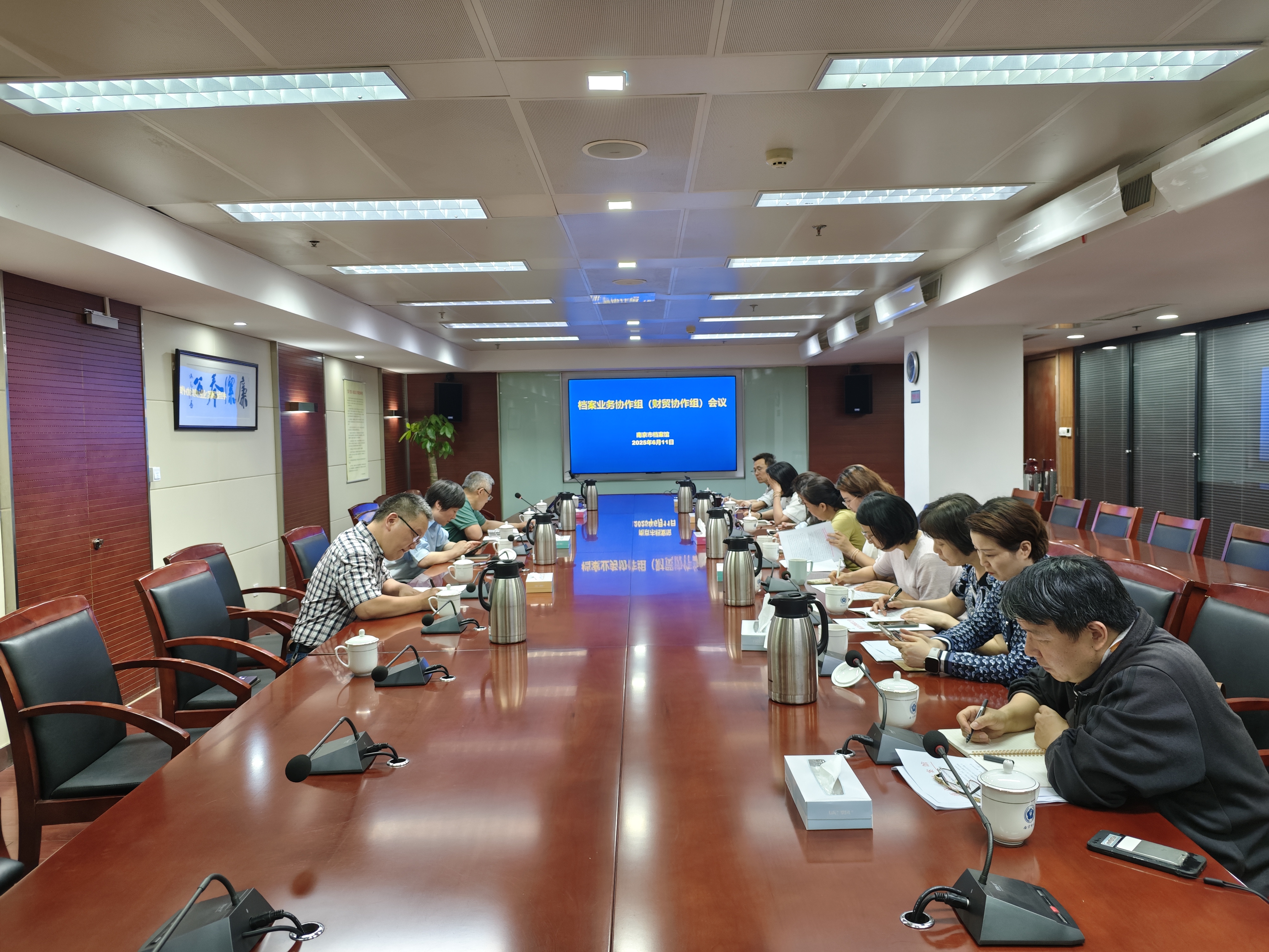 日前,2025年南京市档案馆档案业务协作组(财贸协作组)会议在南京市审计局召开。市档案馆接收保管处负责人、市审计局办公室负责人及财贸组9家单位的档案员参加此次会议。