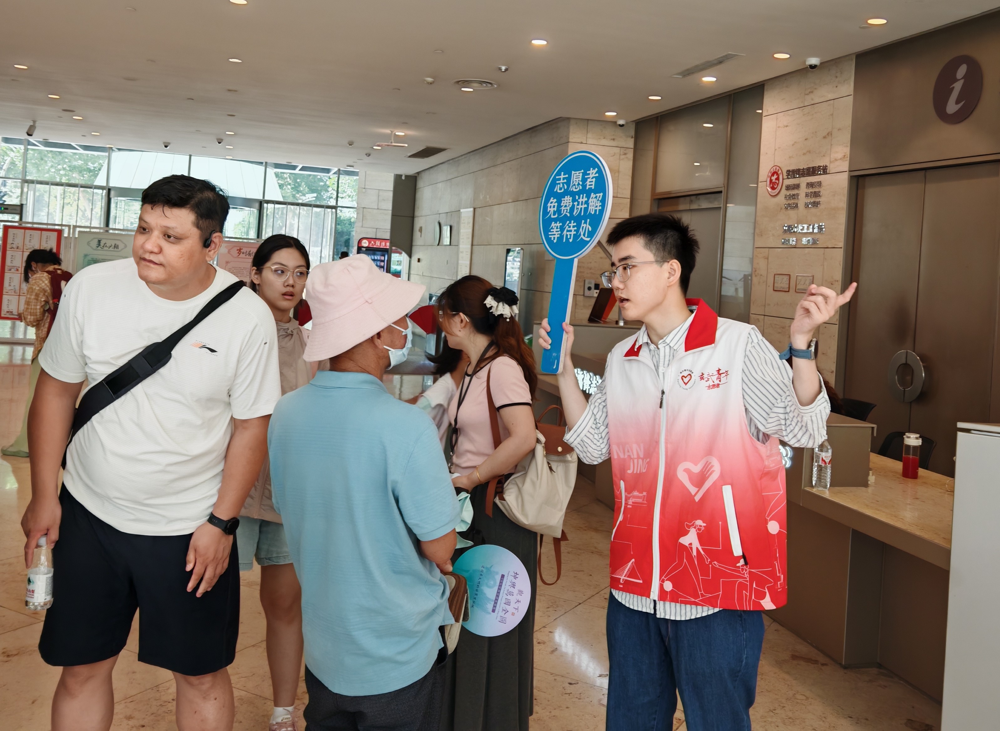 图为审计志愿者在六朝博物馆协助提供游览咨询等服务。(杨志翔)