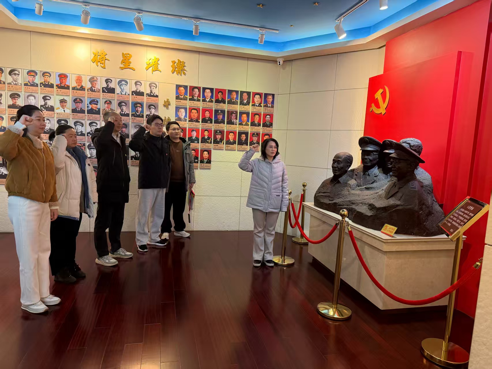 近日,市审计局组织党员赴颐和路社区将军馆开展“铸牢忠诚,强化担当”主题党日活动。活动中,党员干部参观了“将星璀璨”“军旅生涯”等主题展区,通过珍贵的作战手稿、军装实物和历史照片,深入了解革命先辈的光辉事迹。将军们忠诚于党、担当使命、无私奉献的精神,深深触动了每一位党员。参观结束后,全体党员在党旗下郑重举起右拳,重温入党誓词。大家一致表示,要将此次学习收获转化为履职尽责的强大动力,为新时代审计事业高质量发展贡献坚实力量。图为党员干部在党旗下重温入党誓词。(卢宇、罗腾)