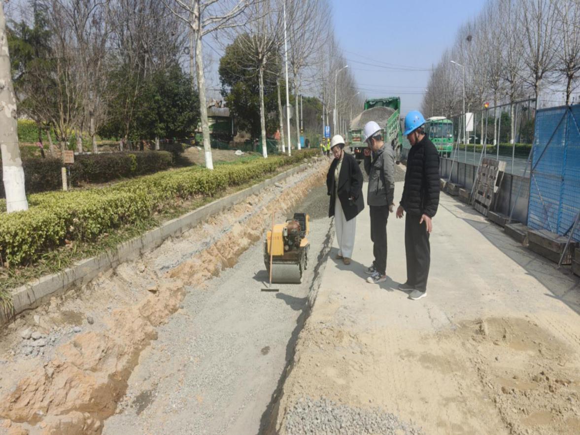 近日,溧水区审计局在白马集镇周家河周边污水管网工程康居路片区施工跟踪审计中,重点关注隐蔽工程质量。审计人员结合计量单、工程签证等资料,现场勘察级配碎石压实度、管材质量、雨水井尺寸和材质等是否达标,并提出相关审计建议,助力提升人居环境,保护城市水系健康。图为审计人员查看施工现场。(乔丹)